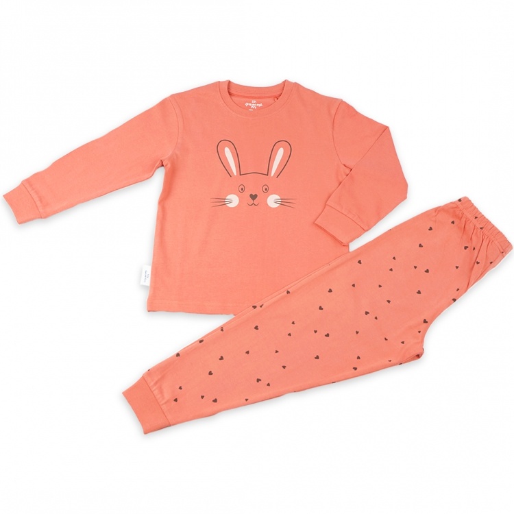 Met de lieve Bunny-print en de zachte perzikkleur (peach) is deze pyjama niet alleen heerlijk comfortabel, maar ook een echte blikvanger. De elastische boorden aan de mouwen en pijpen zorgen ervoor dat de pyjama goed blijft zitten, zelfs bij de meest actieve slapers.