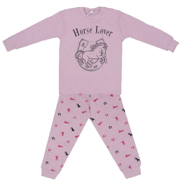 De horse lover pyjama is van 100% katoen en in de kleur roze.