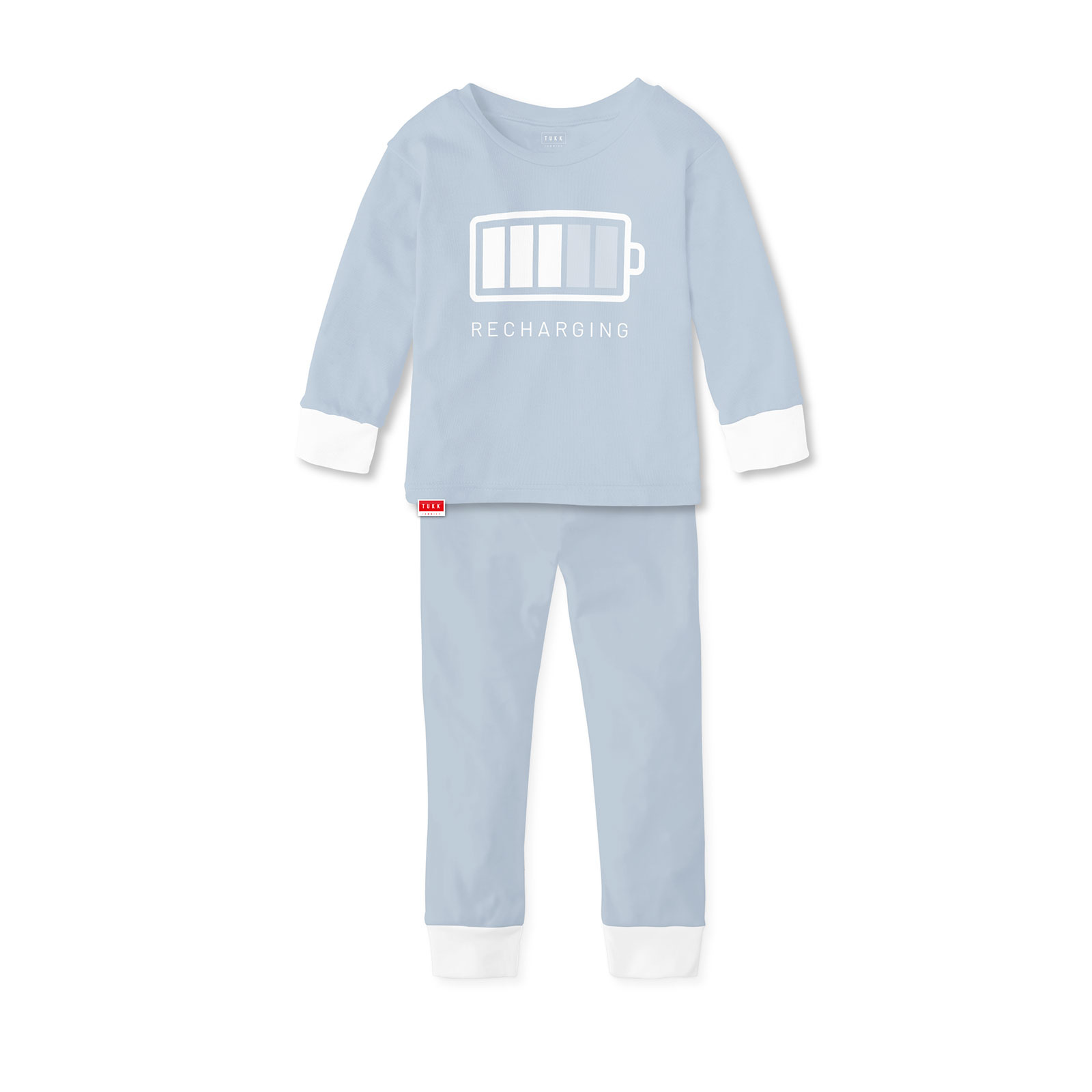 Na een lange dag is het tijd om jouw eigen batterij weer op te laden. Dat doe je het best in de blauwe Tukk Jammies Recharging pyjama – de perfecte combinatie van comfort, rust en een vleugje humor.